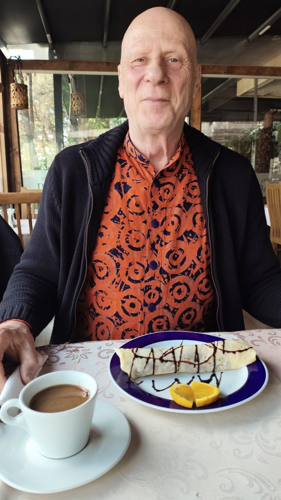 Zum Schluss gibt’s einen Türkischen Kaffee und Pancaks mit Bananen.