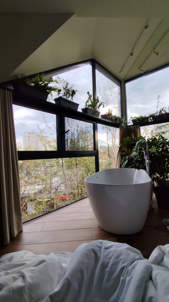 Hier wohnen wir, da oben steht unsere Badewanne.