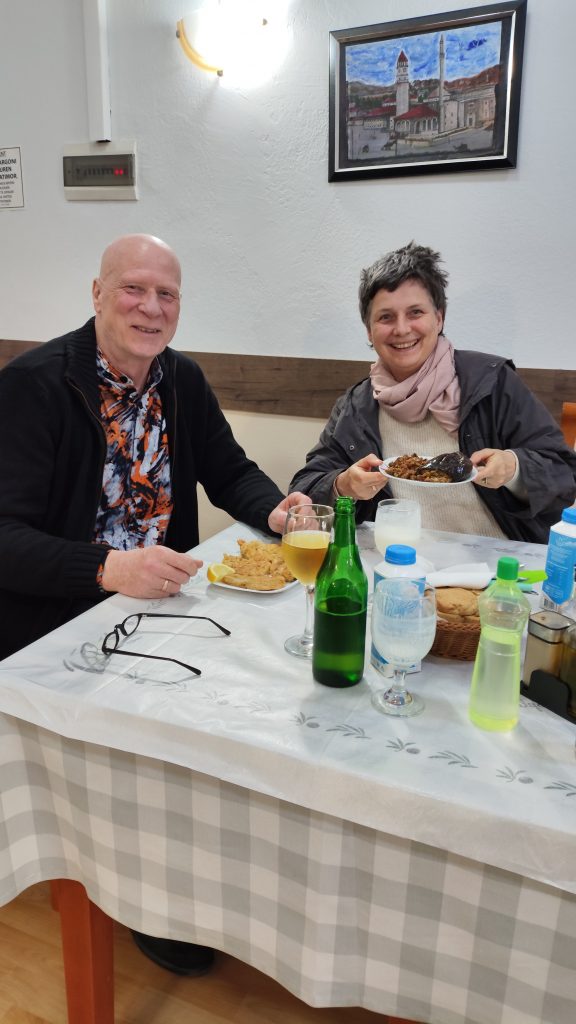 Jetzt gibt’s noch ein spätes Dinner …. und morgen früh müssen wir zeitig aufstehen.