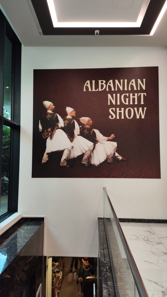 Wir sind heute Abend bei einer ganz besonderen traditionellen Show dabei. Dort werden uns in einem traditionellen albanischen Haus regionale Tänze, Musik und Trachten dargeboten, verpackt in eine dramatische Hochzeitsgeschichte.